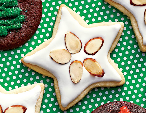 These adorable and delicious star shaped cookies with icing are topped with toasted almond slices. Almond flour can be found in the gluten-free section of your grocery store.
