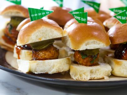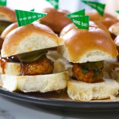 For the sliders: Add a pickle chip to each bun, then set a meatball on top. Skewer with a toothpick. Serve warm.