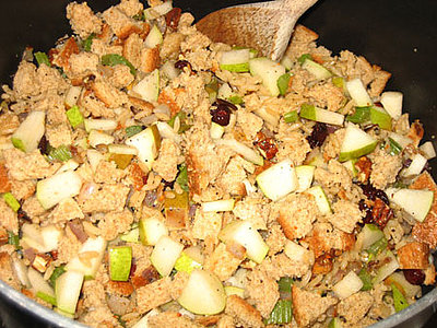 Bake the stuffing: Mix the eggs and apple cider together and pour over the stuffing mixture. Cover with foil and bake for 30 minutes. Remove the foil and continue to bake until brown -- about 15 more minutes. Serve hot alongside roasted turkey and gravy.