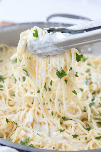Add spaghetti, 1 cup of pasta water, cream cheese and heavy cream to the skillet. Bring to a boil and add shredded cheeses. Stir constantly until cheeses are melted and pasta is completely coated; about a minute. Reduce heat and continue to cook and stir until sauce is thickened and reduced; about 1-2 minutes.