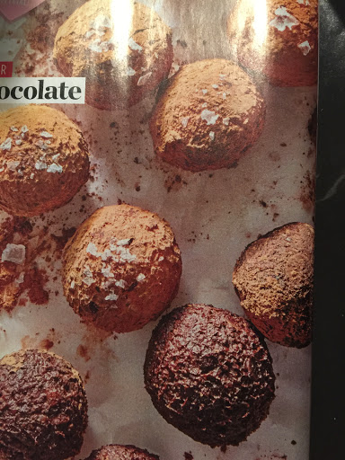 Using a cookie scoop, form dough into 16 balls (about 1-1/2"). Transfer to large plate and chill in fridge about 30-60 minutes. Place remaining 2 teaspoons of cocoa in bowl. Roll the balls in the cocoa until lightly coated; sprinkle with salt. Serve immediately or refrigerate up to 7 days.