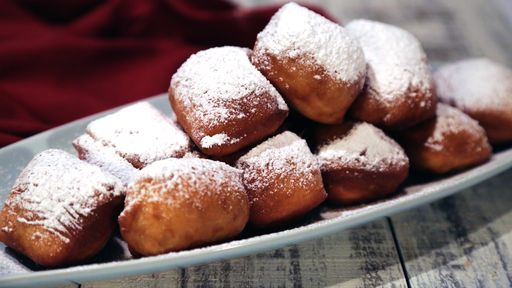 Fry the beignets until puffed and golden brown, about 2-3 minutes. Remove to the baking sheet. Place beignets in paper bags with confectioners? sugar, close, and shake.