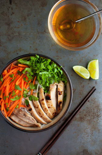 Vietnamese-Style Chicken and Rice Noodle Bowl