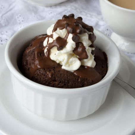 Whisk chocolate cake ingredients together and pour into a ramekin or mug.
