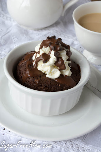 This amazing sugar free, low carb, dairy free and gluten free chocolate cake in a mug is ready to enjoy in only 1 minute! Serve with a dollop of dairy free whipped cream and enjoy!