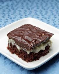 In another saucepan, boil sugar, milk&butter. Remove from heat, add chips until smooth. Add nuts. Pour over cake. Cool at room temperature. Chill overnight.