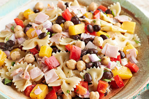 - 3 cups farfalle (bow-tie pasta), cooked, cooled