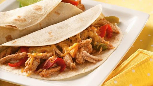3 Using slotted spoon, place 1/2 cup meat mixture in each warm tortilla. Sprinkle with cheese. Serve with sour cream.