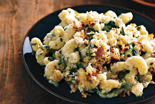 Meanwhile, in large pot of boiling salted water, cook pasta until still slightly firm in centre, 6 minutes. Drain, reserving 1/2 cup (125 mL) of the cooking liquid. Return pasta to pot. Stir in milk mixture, liquid and reserved spinach. Transfer to greased 13- x 9-inch (3 L) glass baking dish.