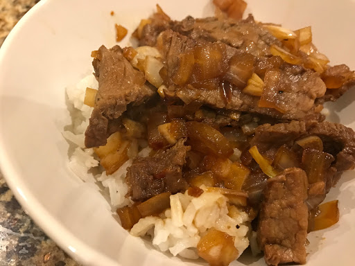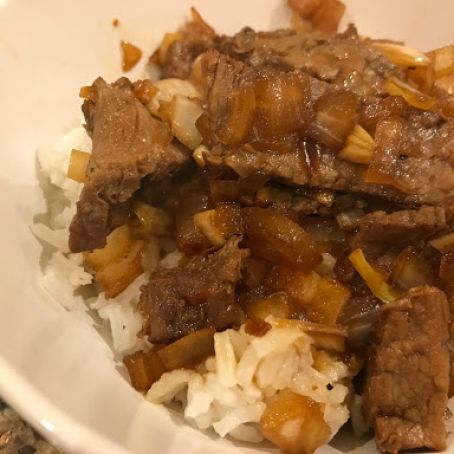 This tasty dish comes together easily for those hectic weeknight meals. Thin slices of beef, onion and garlic are sautéed in soy sauce and cooking sherry. Serve over hot rice and enjoy!