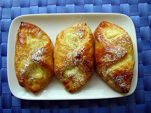 Place a tablespoon of Cream Cheese Filling in center of each square and smear in a slight oval toward two of the diagonal corners. Fold one of the other corners over filling. Moisten its top with a bit of water and fold the opposite corner over the top and press to seal. Line 2 baking sheets with parchment paper or silicone mats and place Danishes on prepared sheets.