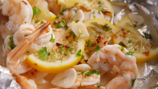 Super easy to make! Shrimp, lemons, garlic, parsley, crushed red pepper flakes, and butter drizzled with white wine and seasoned with salt and pepper are wrapped in foil packets, then grilled to perfection for a treat everyone will love.