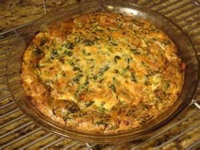 In bowl mix beef, onion, spinach, and spices. Beat eggs with cream and stir into meat mixture. Pour into pastry shell and sprinkle with cheese.