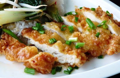 Drain on paper-towels and then place cooked chicken on a rack over baking sheet and place in oven to keep warm while cooking remaining chicken. To serve, slice chicken, drizzle with lemon sauce and finish with chopped green onion.