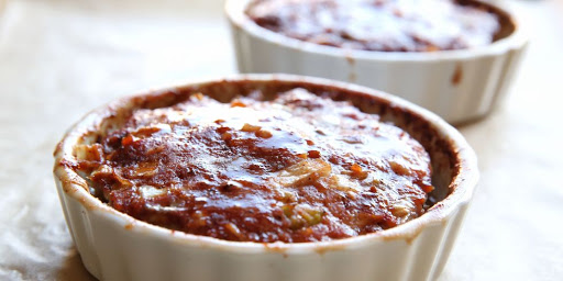3. Divide mixture into 4 large ovenproof ramekins placed on a sheet pan. Brush meatloaf with BBQ sauce and bake for 20 minutes.