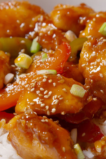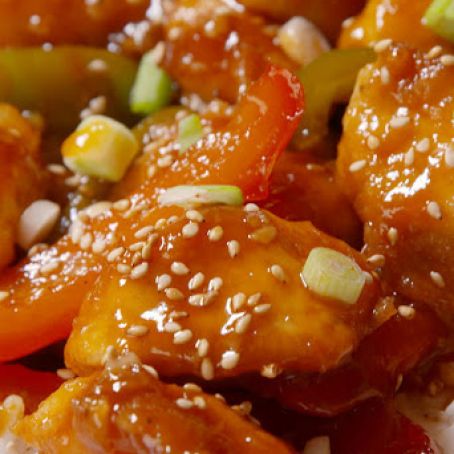 1. Season chicken, on all sides, with salt and pepper. In a large bowl, dredge chicken in cornstarch until evenly coated. Using tongs, shake off excess cornstarch. In a separate large bowl, toss chicken in eggs until evenly coated.