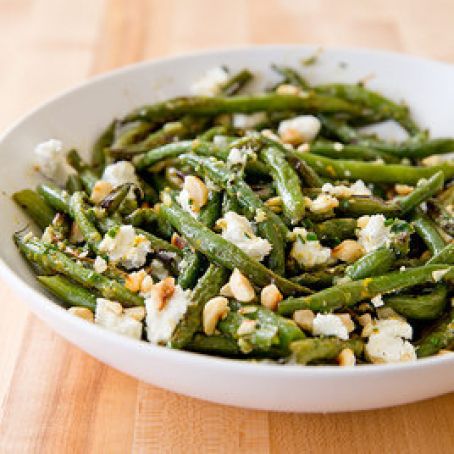 Roasted Green Beans with Goat Cheese and Hazelnuts
