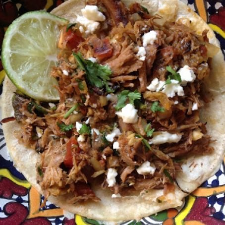 Mama's slow roasted, juicy, moist, crunchy carnitas! Packed with sabor! Que bueno!