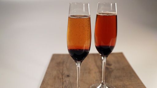 Pour 1/2 ounce of cranberry reduction into the bottom of a flute glass, add 1 ounce of vodka, and top with chilled champagne to serve. Repeat with remaining 3 flute glasses.