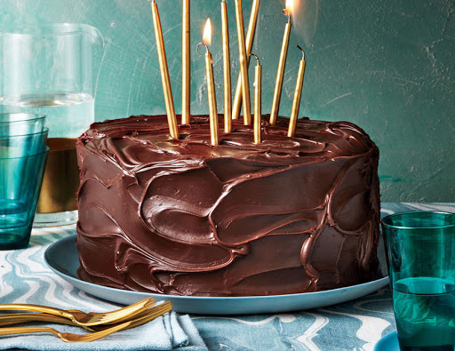 Prepare the Cake: Preheat oven to 350°F. Lightly coat 3 (9-inch-round x 2-inch-deep) cake pans with cooking spray, and line bottoms with parchment paper. Sift together flour, cocoa, baking powder, baking soda, and salt in a large bowl. Set aside.