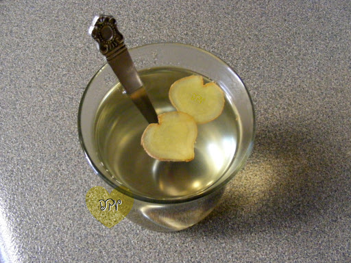 Microwave water in a 2-cup glass measuring cup until it comes to a boil. Add the ginger and let steep for 10-15 minutes, stirring once or twice.