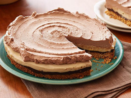 Melt the chocolate with the cream in a microwave, stirring every 30 seconds, until smooth, and then spread the chocolate over the crust. Freeze the crust while making the filling.