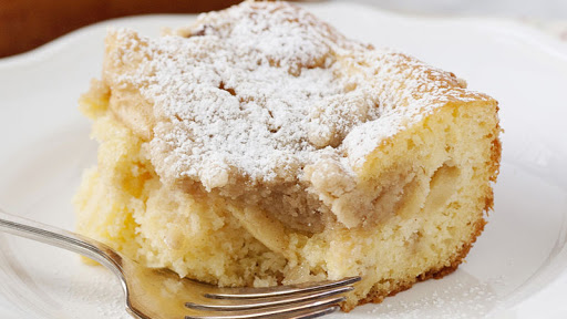 5 Spread apple mixture evenly over cake batter. Sprinkle Topping evenly over top.
