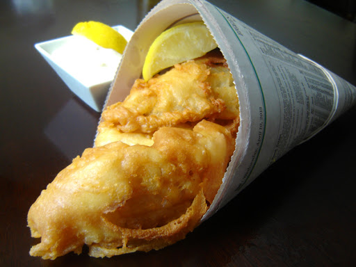 3. Dip each filet into the batter, coating generously, and quickly drop into the oil. Fry each fillet until dark golden brown, about 5 minutes.