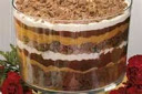 Crumble 1/2 the cake in a 4 quart trifle bowl. Layer with 1/2 peanut butter sauce, pudding; Cool ship, & candy bars. Repeat layers. Cover & refigerate for at least 3 hours.