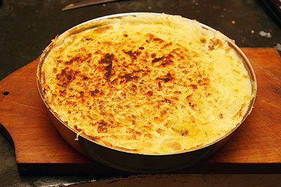 Es un plato de orígen británico, hecho en una base de papas. Considerado como buen acompañamiento por la gastronomía peruana, y además de mayor aceptación. Se prepara mayormente en Arequipa. Son capas de papas cortadas finas, al cual se les agrega un ligue de leche y huevos. LLeva abundante queso y semillas de anís. Se ha popularizado como guarnición del Rocoto Relleno, aunque el verdadero acompañamiento de éste, son papas horneadas coronadas con queso.