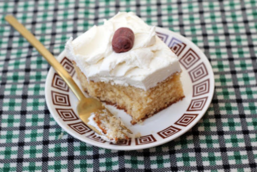 Heat oven to 350°. Grease a 9" × 13" pan with 1 tsp. of the butter; dust with 1 tbsp. of the cake flour; tap bottom of pan to remove excess flour.