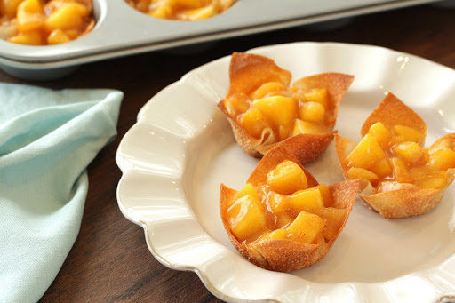 Spoon peach mixture into wonton cups, about 3 tbsp. each.