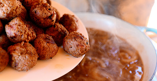 To make the meatballs, combine the first 8 ingredients in a mixing bowl and knead until completely combined. Form into medium-sized meatballs and place on a plate.