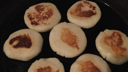 You can make arepas using a heavy skillet over medium heat; spray with cooking oil, place arepas into the hot skillet, and cook until bottoms are crusty and brown, about 5 minutes. Flip arepas and cook other side until browned, 3 to 5 more minutes.