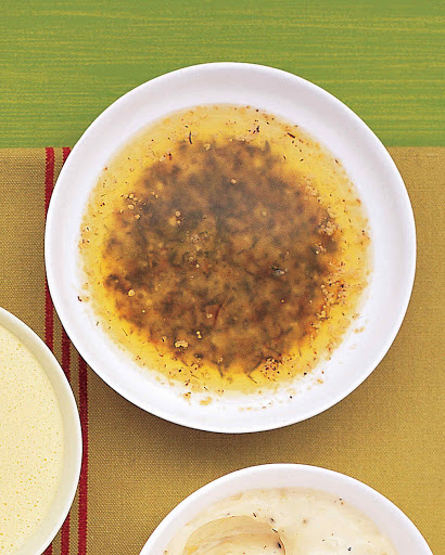 In a small bowl, stir together melted butter, dried thyme, and fresh lemon juice. Season with coarse salt and ground pepper.