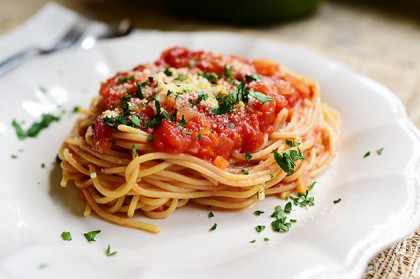 I think marinara sauce is one of life’s simple pleasures, and there’s nothing complicated about making your own pot of the stuff. The only thing it requires is a pot, a few ingredients, and a healthy dose of patience; the longer it simmers, the better it is!