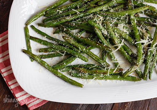 Lay green beans out on the baking sheet and drizzle oil over them. Season with salt, pepper and garlic powder and toss to evenly coat.