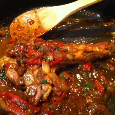 Add roasted peppers to skillet with onion, remaining garlic, cherry peppers, and 1/4 teaspoon salt. Cook, stirring occasionally, until onion is softened, 5 to 6 minutes. Add wine and broth and boil until liquid is reduced to a glaze, about 5 minutes. Add meat juices from plate and remove skillet from heat. Add butter, stirring until incorporated. Stir in lemon juice, parsley, and salt to taste and spoon over chops.
