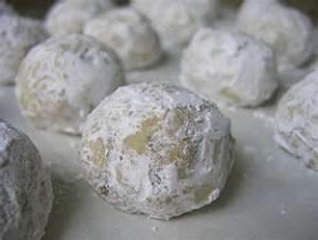 Heat oven to 400*. Roll dough in 1" balls. Place on ungreased baking sheet. Bake 10 to 12 minutes, or until set but not brown. While still warm, roll in confectioners' sugar. Cool. Roll in sugar again.