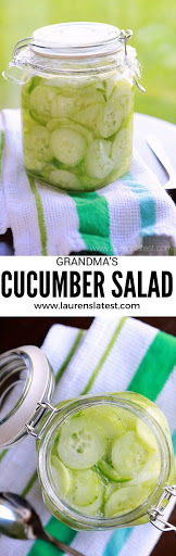Peel cucumbers and slice very thin. Place into bowl with onion, bell pepper and garlic.