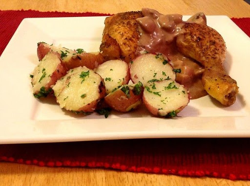 When the chicken is done, remove it to a carving board and let it rest at room temperature while completing the sauce.