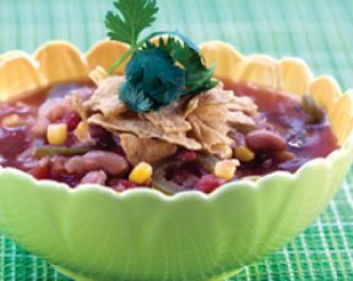 5. Ladle soup into serving bowls. Crumble remaining tortilla chips over the top and garnish with cilantro.