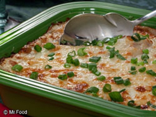 Spoon potato mixture into prepared baking dish. Sprinkle with cheese then pour cream over top. Sprinkle with scallions.