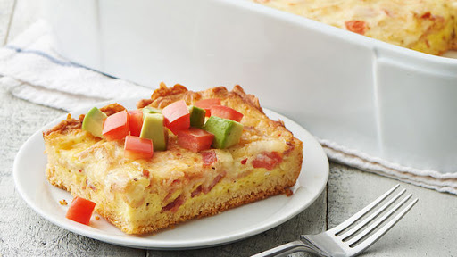 Bake 20 to 24 minutes or until knife inserted in center comes out clean and crescent crust is deep golden brown. Cool 5 minutes before serving. Top or serve with remaining 1 cup tomatoes and the avocado.