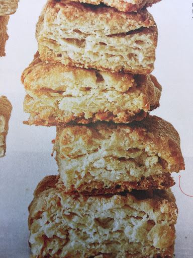 Pulse baking powder, salt, sugar, baking soda and 4 cups flour in food processor until well combined. Add cold butter and pulse until mixture is crumbly, with some pea-size pieces of butter remaining.