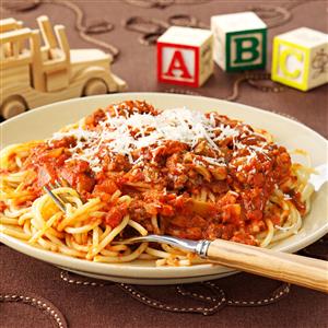 2. Serve desired amount with spaghetti and sprinkle with additional cheese. Cool remaining sauce. Freeze in serving-size portions in freezer containers. May be frozen for up to 3 months.