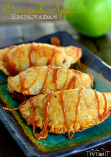 Reheat caramel if necessary and then drizzle over the top of empanadas and serve.