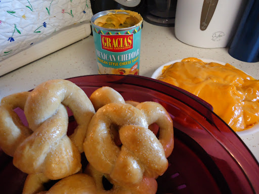 Bake 10-13 minutes longer or until golden brown. Remove to wire racks. Serve pretzels warm with dip. Makes 16 pretzels.