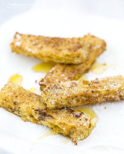Quick and easy french toast strips are prepared in an air fryer, making it easy to make french toast for a weekday breakfast!