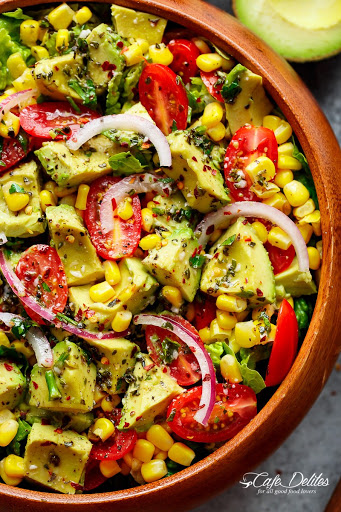 Avocado Corn Tomato Salad with a lime juice dressing is delicious served on its own, or as a side that easily pairs with anything on your plate!